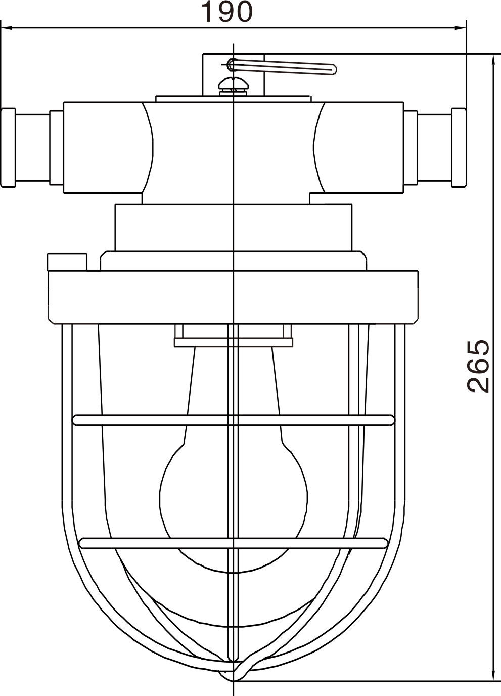 60W熒光燈由上、下燈體兩部分組成,以三個止口相連,并用兩個M5×14螺釘定位。上燈體由鋁合金外殼、電纜引入裝置及設(shè)有連鎖機構(gòu)的燈座組成,并設(shè)有內(nèi)外接地螺釘。下燈體由鋁合金外殼、密封墊、防爆玻璃罩及金屬保護網(wǎng)組成。鋁合金外殼轉(zhuǎn)動時,能使燈座觸頭自動斷電,從而保證了安全。 燈頭與電源采用直口式壓接方式。熒光燈被壓在上燈體與下燈體之間。接線腔與光源腔、燈具內(nèi)腔與外界之間由符合規(guī)定的隔爆接合面連接。
